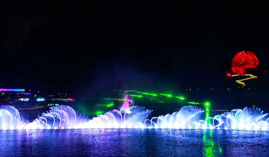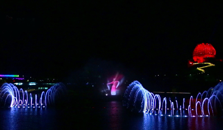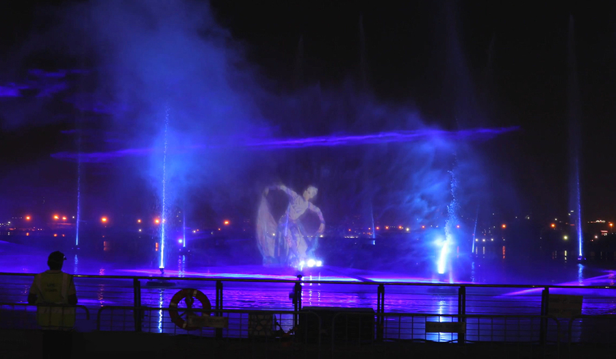 水幕通常高達(dá)20余米,寬30-60米,水幕電影播放時(shí)的畫(huà)面具有很強(qiáng)的立體感和空間感,人物似騰飛天空或自天而降,與自然夜空融為一體,產(chǎn)生一種虛無(wú)縹緲和夢(mèng)幻的感覺(jué),再配以激光圖案,場(chǎng)面更顯宏大,氣勢(shì)磅礴。水幕電影適用于重大節(jié)日集會(huì)、大型廣場(chǎng)、主題公園場(chǎng)所。